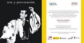 Invitación a la inauguración de exposición : Miguel de Molina, Arte y Provocación. Centro Cultural Recoleta, Buenos Aires.