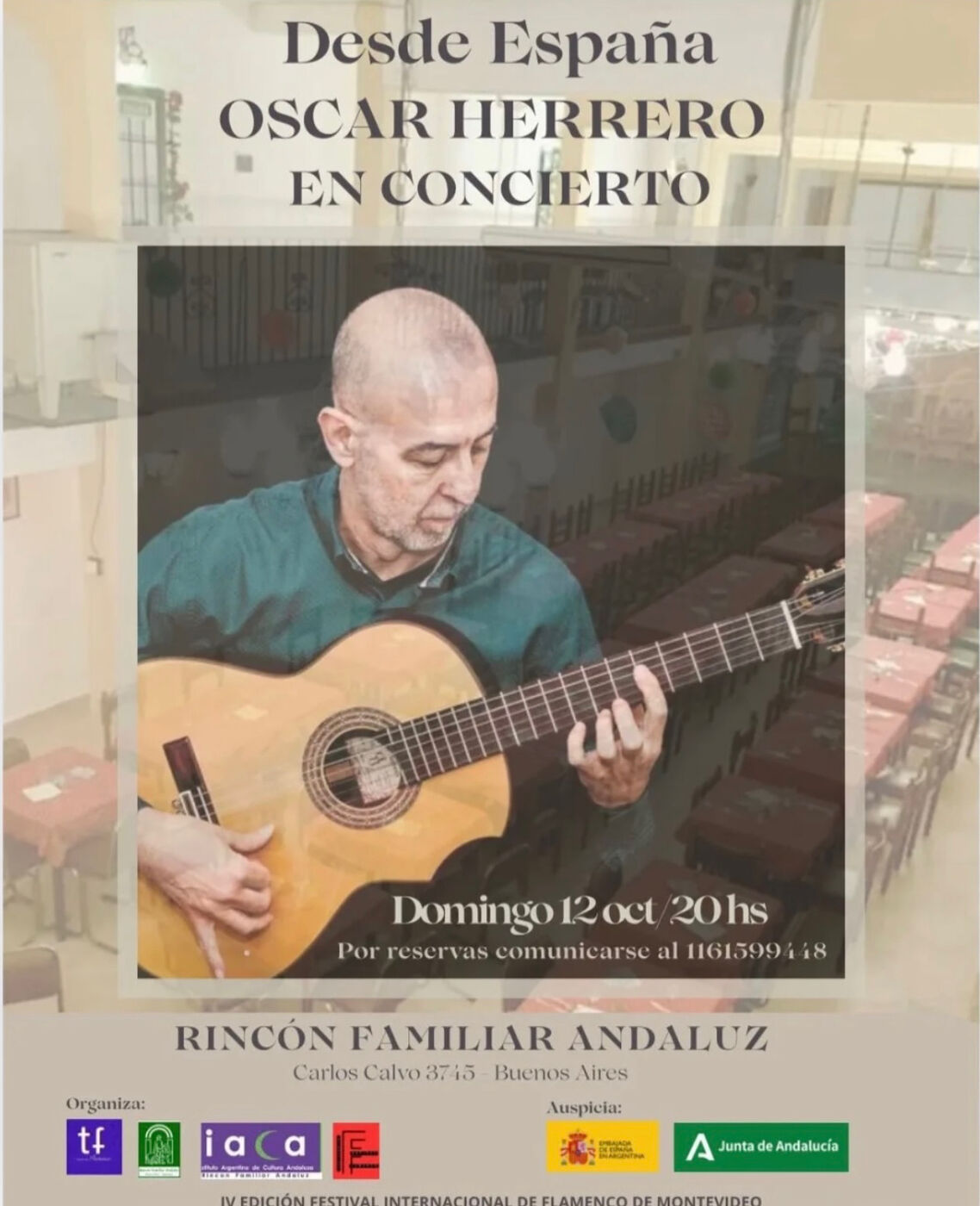 Continuando con el objetivo de darle extensión al festival en Buenos Aires como lo hicimos el año pasado 2024, les contamos que el maestro OSCAR HERRERO se presenta en un concierto único el domingo 12 de octubre en el Rincón Andaluz.