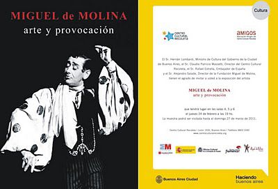 Invitación a la inauguración de exposición : Miguel de Molina, Arte y Provocación. Centro Cultural Recoleta, Buenos Aires.