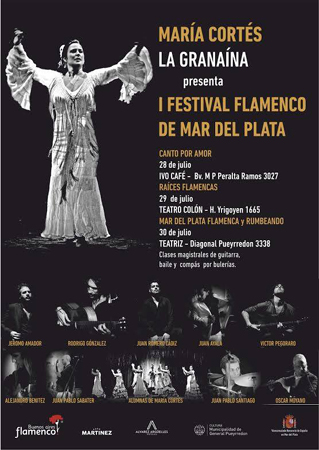 Desde el 28 hasta el 30 de julio, se realizará el I Festival Flamenco de Mar del Plata, y contará con la presencia de María Cortés “La Granaína”(España), Rodrigo González, Jeromo Amador, Juan Romero Cádiz, Juan Ayala, además de músicos como los guitarristas Alejandro Benítez y Víctor Pegoraro, entre otros.