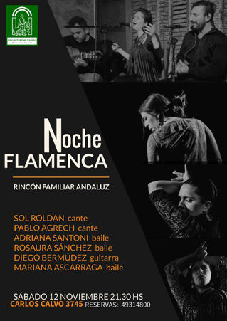 El próximo sábado 12 de noviembre a las 21.30 hs en Carlos Calvo 3745, el Rincón Familiar Andaluz celebrará una Noche Flamenca, con fantásticos artistas y ricos platos con sabor andaluz