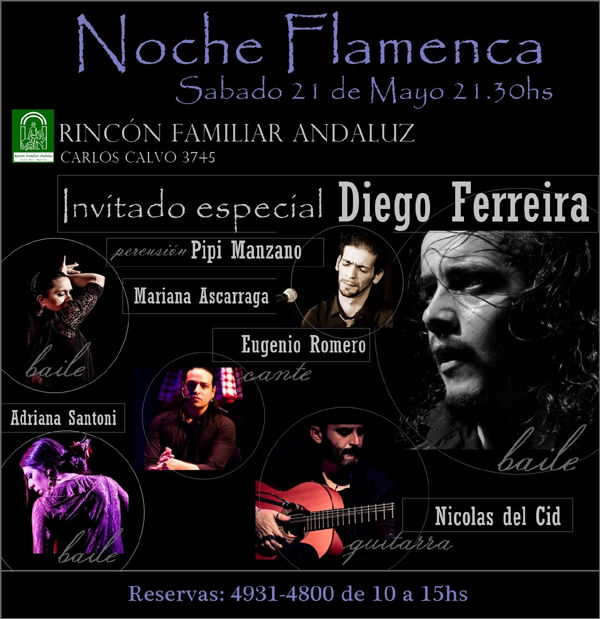 El próximo 21 de mayo a las 21.30 horas en Carlos Calvo 3745, el Rincón Familiar Andaluz celebrará una " Noche Flamenca" donde se podrá disfrutar de espectáculo Flamenco, Cante y Baile.